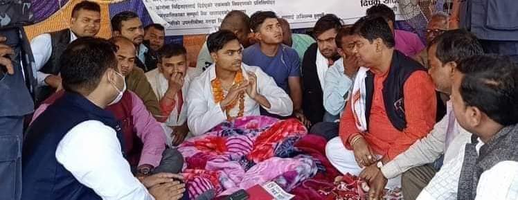 रौतहट,०८ चैत्र। रौतहटको गरुडा नगरपालिकाको मेयर पदका प्रत्याशी दीपक यादवले १४ सूत्रीय माग अघि सार्दै तीन दिनअघि सुरु गरेको आमरण अनसन जारी छ । नगरपालिकाका मेयर कन्थमनी जैसवाल र प्रमुख प्रशासकीय अधिकृत भुदेव झाले मंगलबार उनलाई भेटेरै माग पूरा गर्ने प्रतिबद्धता जनाए पनि यादवले अनशन जारी राखेका हुन् ।